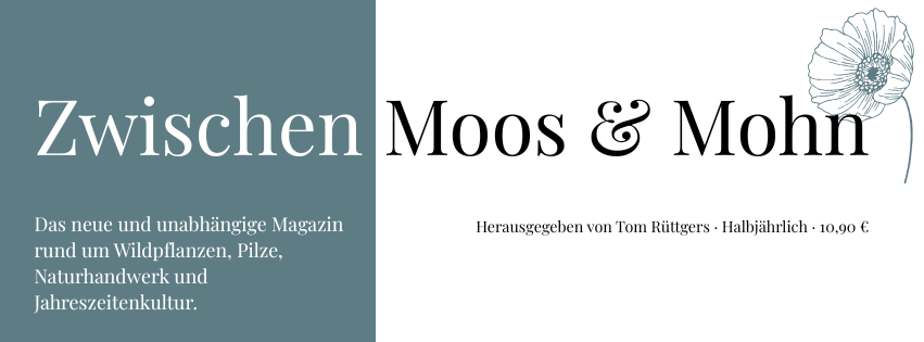 Zwischen Moos & Mohn ist ein unabhängiges Magazin rund um Wildpflanzen, Naturhandwerk und das Leben im Rhythmus der Jahreszeiten – herausgegeben von Tom Rüttgers und dem Team von kräutertom.